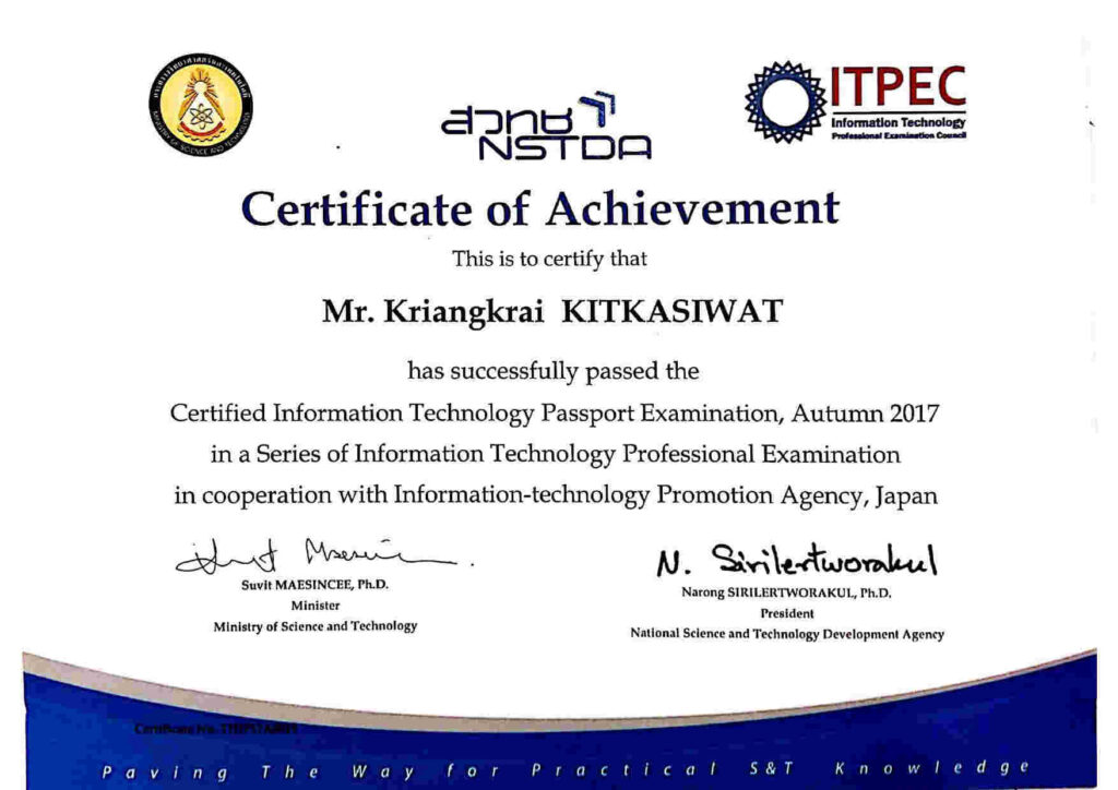 รับประกันโดยผู้ที่มีประสบการณ์การทำงานมากกว่า 10 ปีในวงการไอที การันตีโดยประกาศนียบัตรระดับประเทศในด้านไอทีมากมาย